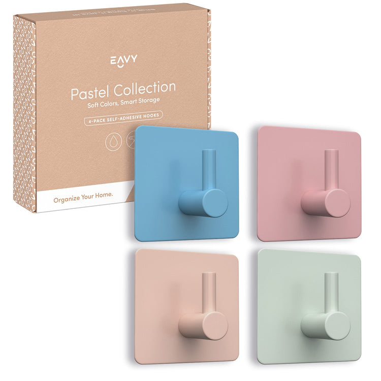 EAVY - Kinderkapstok - Zelfklevende handdoekhaakjes - Pastel Kleuren - Vierkant - RVS - 4 stuks